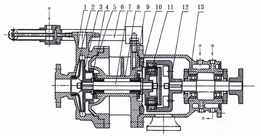 6、泵運行1500小時后,應(yīng)拆檢軸承和端面動環(huán)的磨損情況,并更換不宜再用的易損件。