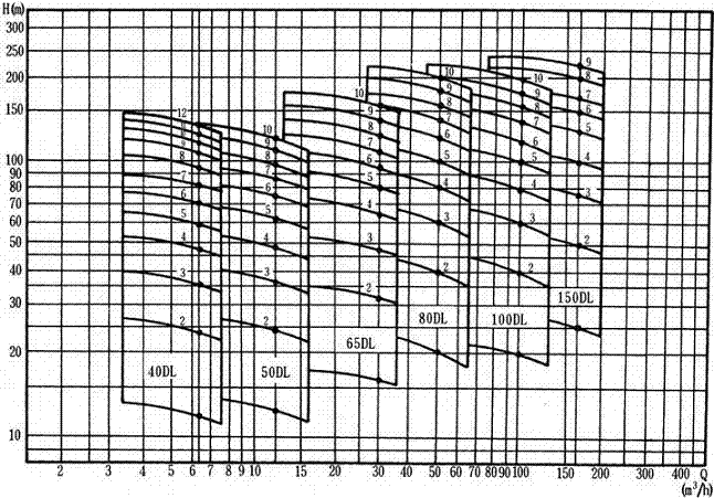 4、根據(jù)實際情況,DL型立式多級離心泵的出口可裝配成1~5個出口,以滿足同一臺泵上獲得不同的揚程;